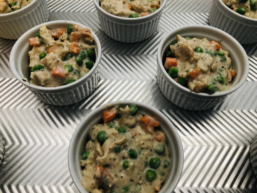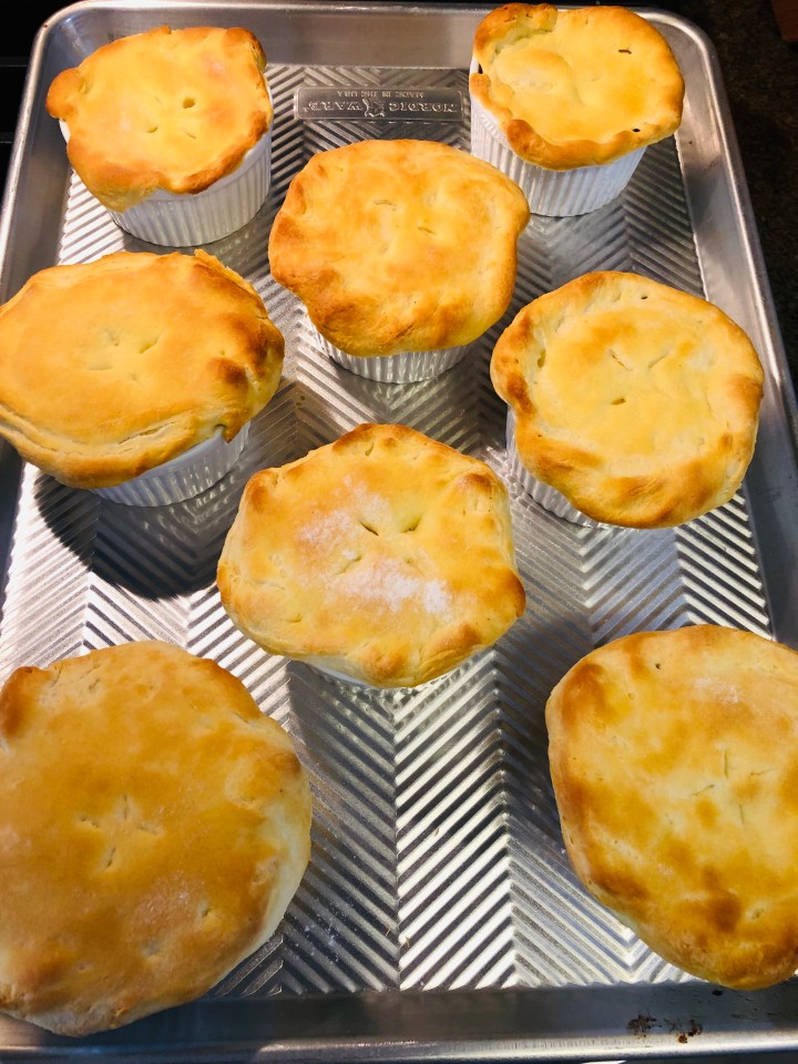 - If you are not interested in using the ramekins to create eight servings, use a casserole dish, add the filling and cover with biscuits, and bake! No need to adjust the baking time or temperature.