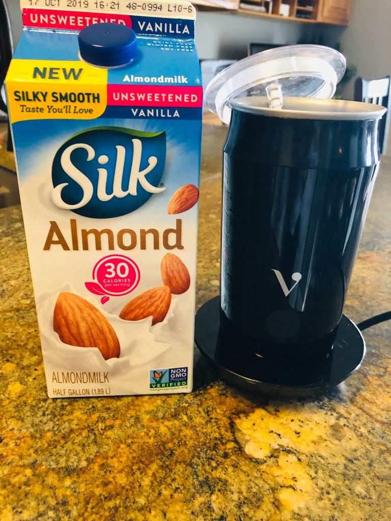 Second step: If you have a milk frother, you will want to froth your Unsweetened Vanilla Almond Milk! If not, you can simply just warm it up a little. I recommend that you add the flavored syrup to the milk when you froth it.