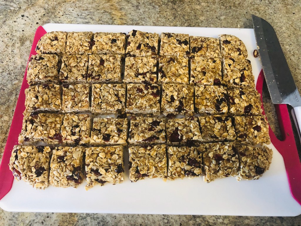 These granola bars are kid tested and approved! They are so good that I will make them and offer them in work meetings or as a post workout treat… my neighbors even make special requests! The recipe is simple and that makes it easy to add or adjust the types of nuts, fruit etc. that fits your taste the best. So you can really make it into your own!