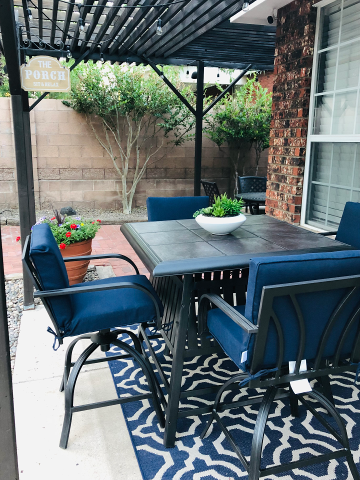 Overall, this was a successful, fun project! The total cost was less than $200.00 to rejuvenate and bring life back to our new outdoor table and chairs. Keep in mind that half of the cost was new cushions. It looks brand new, we have a new seating area in our backyard and it helped keep a few items out of the landfill.